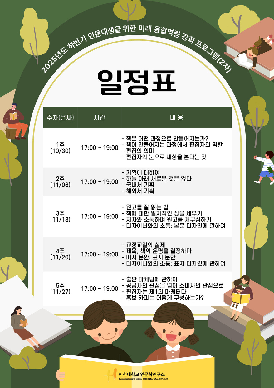 ○ 참가대상: 인문대학 재학생/휴학생/수료생 15명(대기자 5명)