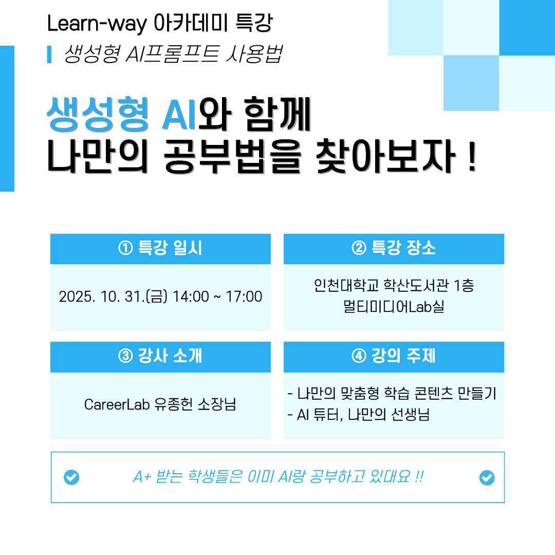 [교육혁신본부] Learn-Way 아카데미 특강-생성형 AI프롬프트 사용법(2025.10.31. 14:00)