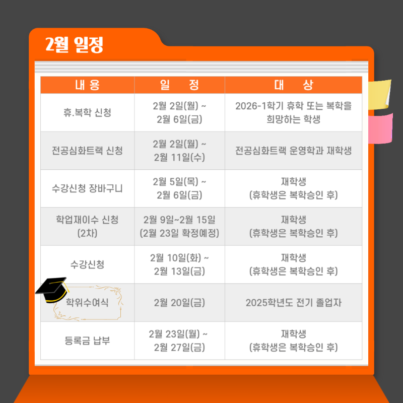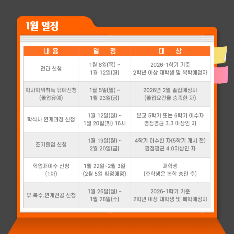 [학사안내] 2026년 1월-2월 학사일정 안내