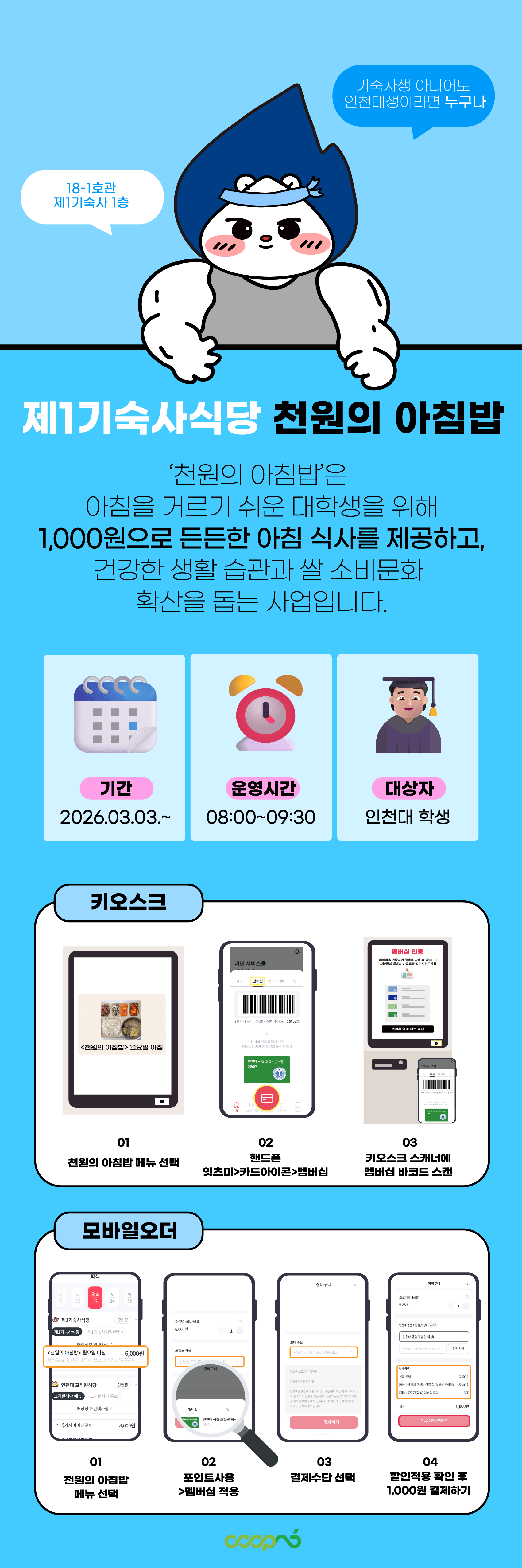 이용방법: 키오스크 또는 잇츠미 앱에서 ‘천원의 아침밥’ 메뉴 선택 후 멤버십 인증