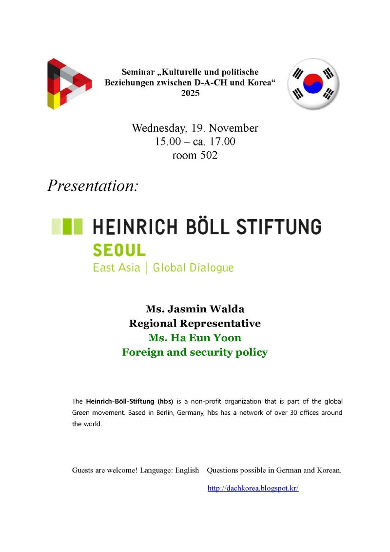 [지역학의 이론과 실제] 2025-2학기 특강: Heinrich Böll Stifung Seoul 2025.11.19(수) 15:00 15호관 502호 강의실